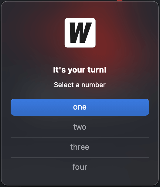 the button with "three" is shown at the bottom of the dialog. When escape is pressed, the value "three" is returned: